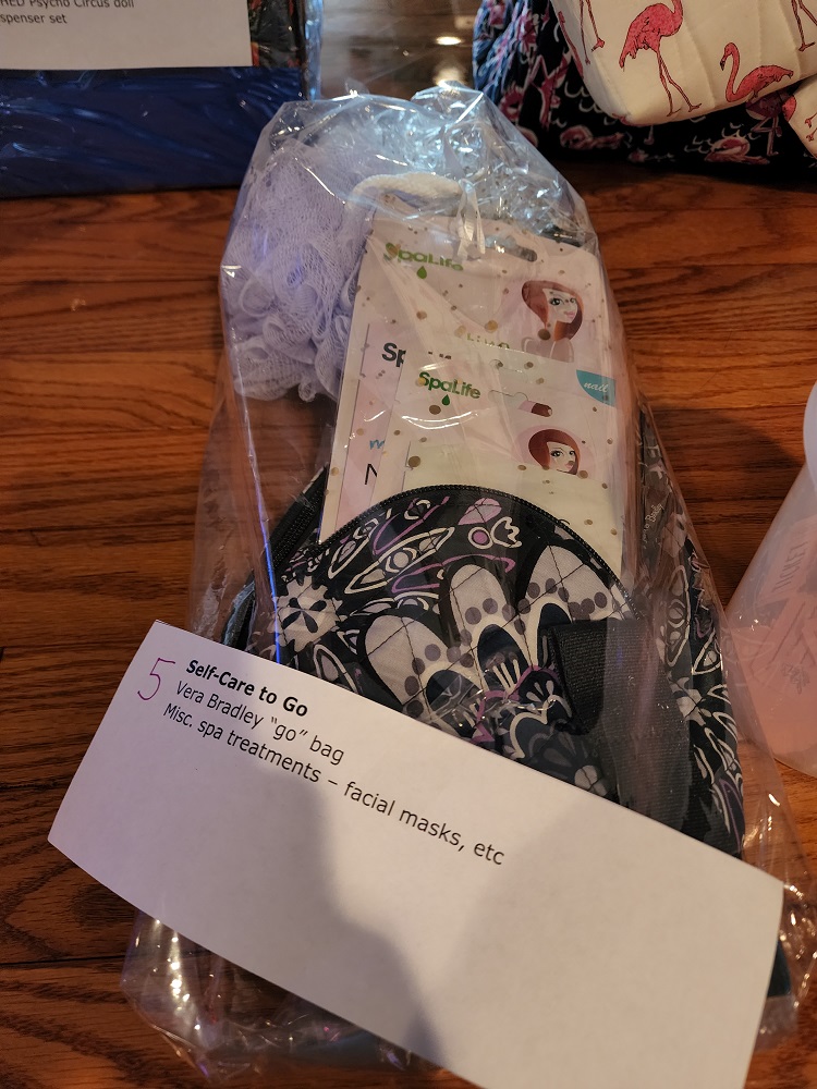 Vera Bradley “go” bag, Misc. spa treatments–facial masks, etc